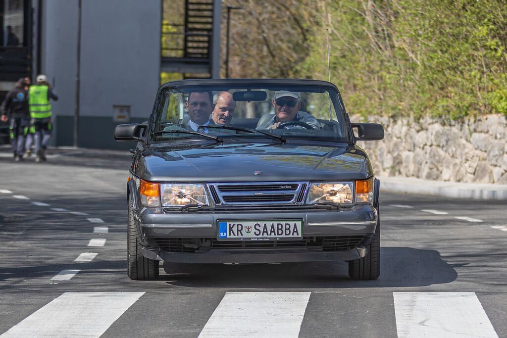 Saab 900 turbo iz leta 1990 kot prvi zapeljal po obnovljeni cesti v družbi