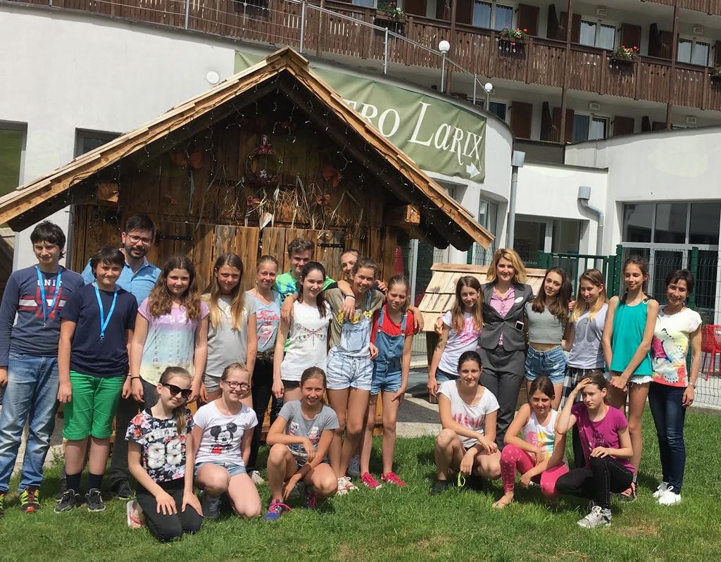 Sledil je ogled hotelske restavracije in konferenčne dvorane. Vsi smo obnemeli ob prečudovitih razgledih na gori Razor in Prisank, kar smo lahko videli iz posameznih sob. Zato tudi nismo zamudili priložnosti, da se fotografiramo na čudovitem vrtu pred hotelom.