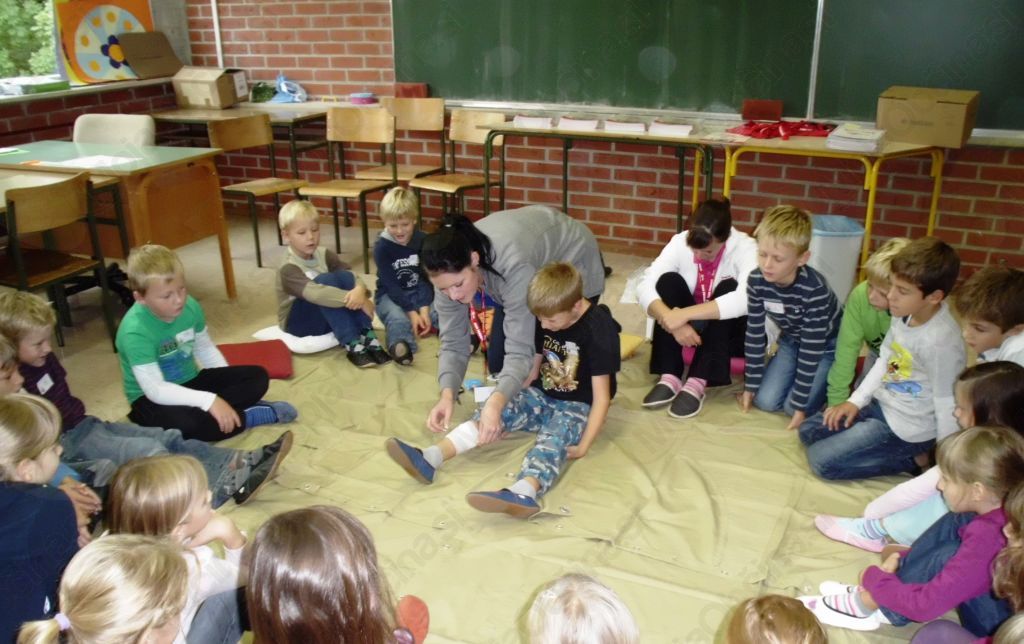 Bled - Prvi oktobrski četrtek so se najmlajši otroci z blejske osnovne šole, iz prvih in drugih razredov, učili prve pomoči. Vodja projekta, Vasja Žemva je sporočil, da je v projektu sodelovalo kar 125 otrok, ki so jih učile absolventke Visoke šole za zdravstveno nego Jesenice.  Otroci so tako spoznali, kako preprečiti nesrečo in kako pomagati, ko se ta zgodi. Seveda je na prvem mestu preventiva, torej kako ravnati, da do nesreče sploh ne pride, kako se sami zaščitijo pred njo in podobno. Otroci so se naučili tudi, kako lahko pri manjših poškodbah sami nudijo prvo pomoč.