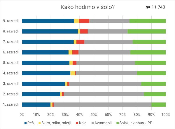 šolo potovali aktivno, kot pri tistih, ki so jih vozil z