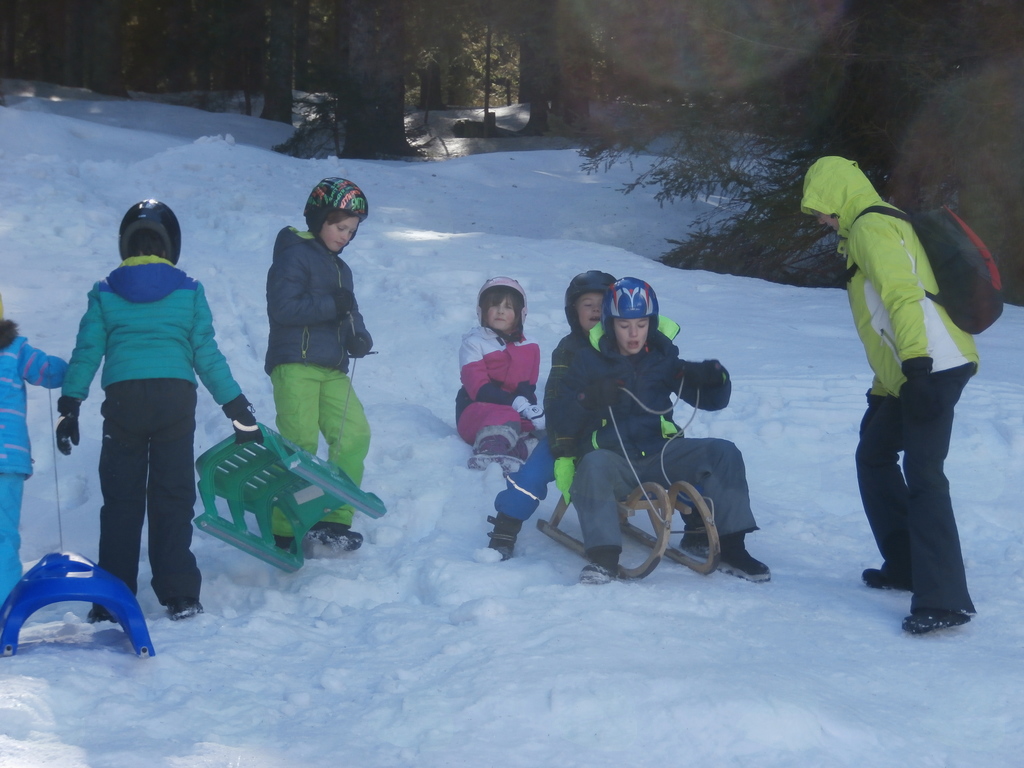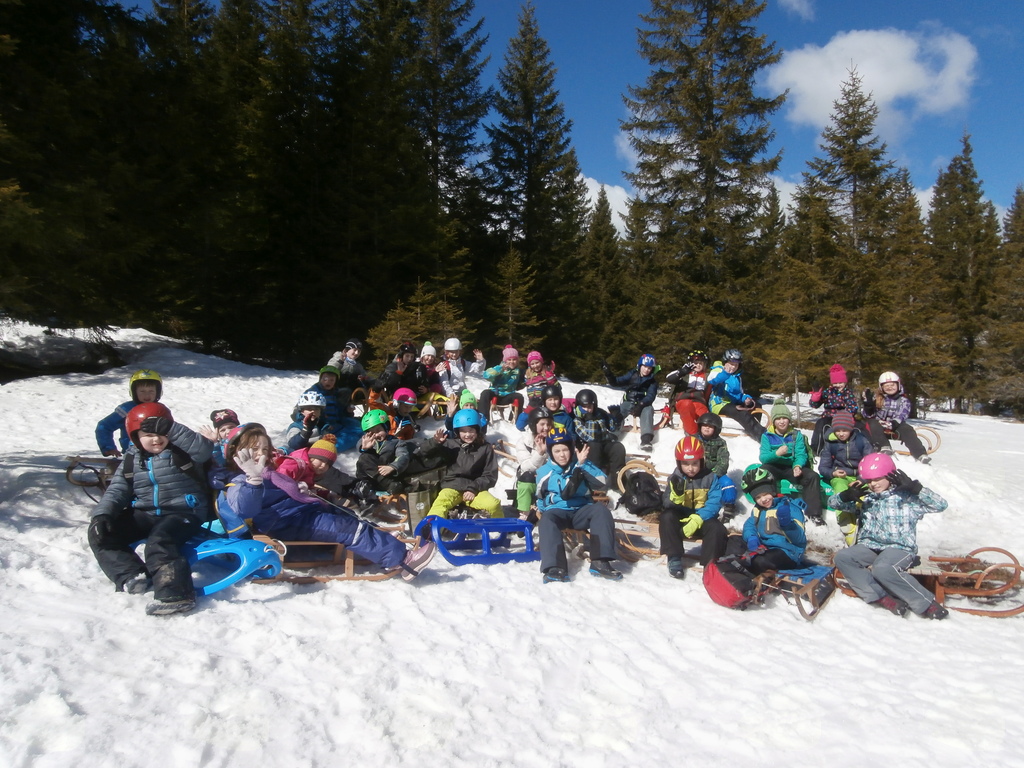 Šli smo se sankat na Pokljuko k smučišču Jelka. Sankaško progo so nam pripravili v gozdičku. Bilo je zabavno. Sankali smo se vsi učenci od 1. do 5. razreda. Na progi je bilo veliko lukenj, zato smo večkrat padli s sank. Na ves glas smo se smejali. Imeli smo tudi zelo dobro malico. Naš dan se je končal s prihodom v šolo. Juhu, ujeli smo še zadnji sneg!