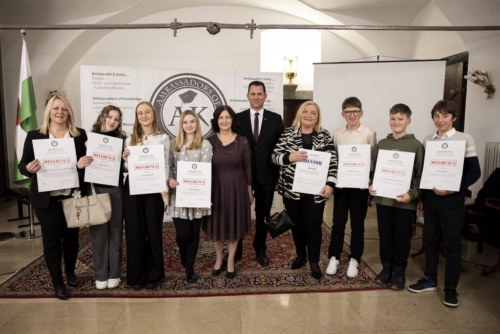 Projekt Ambasadorji Znanj, ki ga od leta 2024 razvija Life Learning Academia, povezuje posameznike in organizacije iz več kot 30 držav. Namen projekta je povezovati odličnost, širiti znanje ter graditi mostove med gospodarstvom, akademsko sfero in družbo. Ambasadorji Znanj so ugledni, uspešni posamezniki, ki s svojim delom, etičnostjo in zgledom predstavljajo navdih trenutnim in prihodnjim generacijam. V četrtek, 29. januarja, smo se v Mestni hiši v Ljubljani, udeležili dogodka, na katerem so bila podeljena priznanja Referena in Mentor, ki jih podeljujejo izjemnim posameznikom, ki s svojim znanjem, rezultati in predanostjo prispevajo  k razvoju družbe znanja in sodelovanja. Priznanje Referenca je prejela Osnovna šola prof. dr. Josipa Plemlja Bled in učenci: Jeno Aleksander Berce, Vale koren, Jakob Jerman, Tita Dervarič, Ajda Kralj in Vanja Jamar, priznanje Mentor pa mentorica otroškega parlamenta Meta Pazlar. V obrazložitvi je bilo navedeno, da so priznanja navedenim prejemnikom podeljena za aktivno sodelovanje pri ideji, ustvarjanju, koordiniranju in izvedbi kozolca za telovadbo Lojza. Vsako leto izberejo tiste, ki izstopajo iz povprečja, najbolj perspektivne posameznike v organizacijah ali institucijah. Dogodka so se udeležili predstavniki politike, gospodarstva, akademske sfere ter drugi ugledni mednarodni gostje, prejemnike priznanj pa sta spremljala tudi ravnateljica in župan. Po uradnem delu je sledilo sproščeno druženje, ki je omogočilo navezovanje novih stikov, izmenjavo izkušenj ter pogovore o prihodnjih sodelovanjih. Večer je tako presegel zgolj podelitev priznanj, postal je prostor povezovanja, dialoga in skupne vizije o pomenu znanja v sodobni družbi. Za našo šolo je bila udeležba na takšnem dogodku velika čast in potrditev, da s skupnim delom, ustvarjalnostjo ter odgovornim pristopom pomembno prispevamo k razvoju skupnosti.