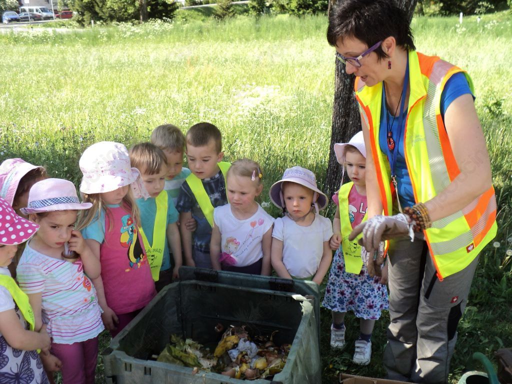 V sklopu eko projekta »Odpadki« smo se z otroki iz skupine Ribic odpravili na Infrastrukturo Bled. Tam nas je sprejela gospa Jožica Peljhan, ki nam je predstavila kompostiranje. Otroci so na ta način prepoznavali organske odpadke in se srečali s kompostnikom. Nato smo spoznali vodovodni sistem in način, kako preveriti ustreznost pitne vode. Gospod Janez nam je predstavil kako ločujemo odpadke, kako praznijo kamione, kakšne barve so zabojniki, kje hranijo nevarne odpadke, belo tehniko, gradbeni material, kaj naredijo z oblačili, ... Na koncu so otroci sami razvrščali odpadke in se pri tem izredno zabavali. Hvala gospe Jožici za prijetno in poučno dopoldne.