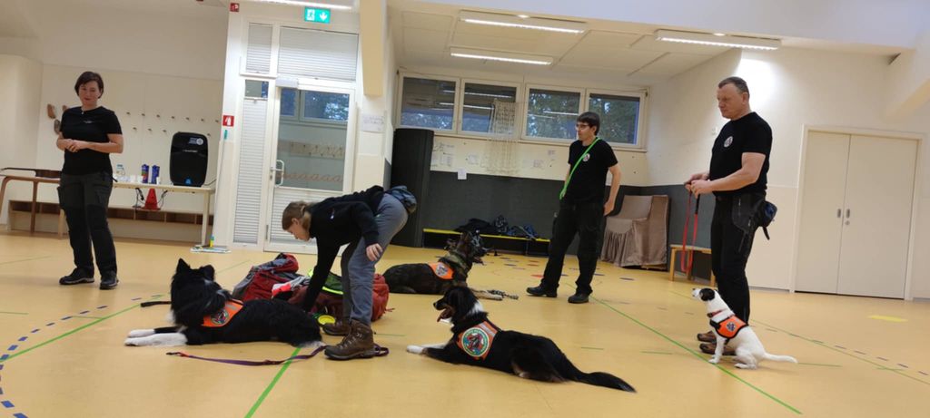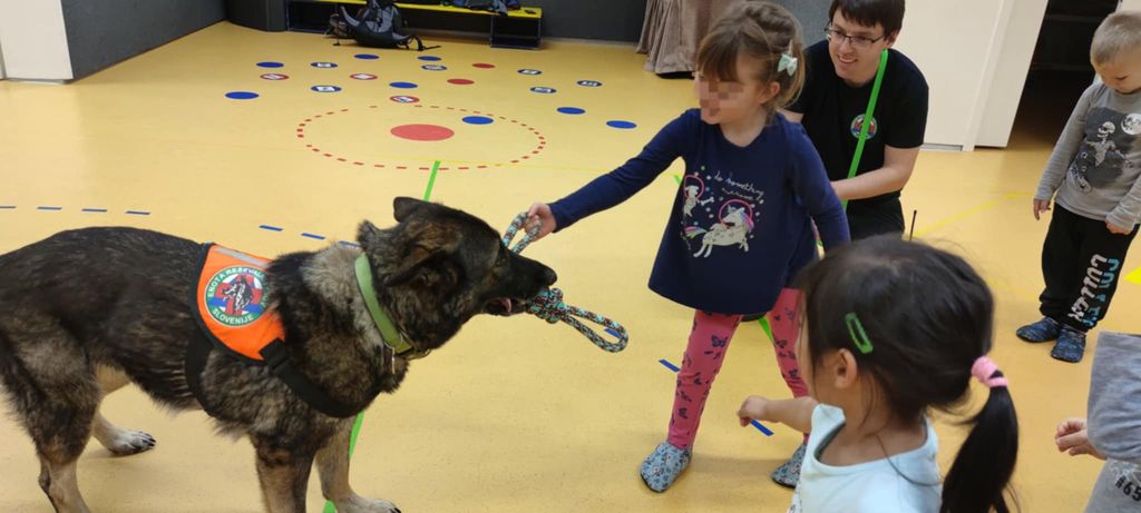 Otroci so že predčasno preko različnega didaktičnega materiala spoznali pravilen pristop in ravnanje s kužki. Spoznali so pasjo govorico telesa, si v jutranjem krogu ogledali različne fotografije reševalnih kužkov in spoznali pravila obnašanja. Otroci so težko pričakovali obisk štirinožnih prijateljev. V telovadnico so vstopili vodniki ter njihovi kužki (nemška ovčarka Eli, borderski ovčar Bak, mini avstralska ovčarka Missy ter terierka Lucy).