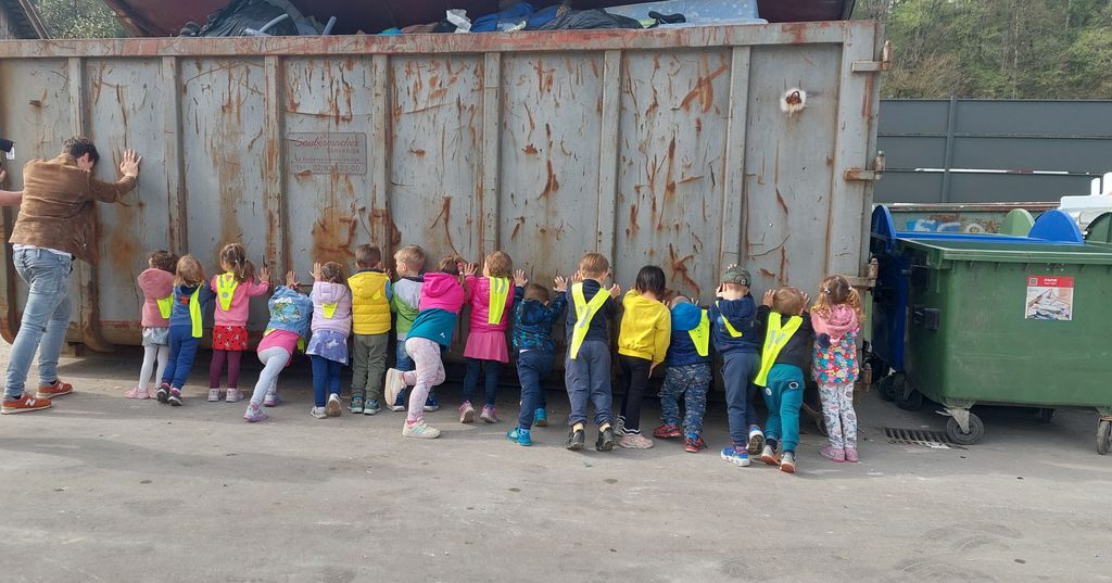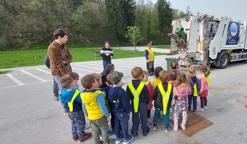 Mesec april smo v skupini Čebelice posvetili odpadkom. Na samem začetku smo obiskali Infrastrukturo Bled, kjer sta nam gospod Štefan in gospod Matjaž zelo nazorno predstavila potek zbiranja in ločevanja odpadkov. Otroke smo spodbudili k aktivnemu sodelovanju, tako so si najprej ogledali smetarski tovornjak ter namen njegovega delovanja. Ugotavljali so razlike med smetnjaki; kateri so čipirani za praznjenje ter kateri ne. Nato so se pomerili v moči ter preizkušali, ali so vsi skupaj dovolj močni, da bi lahko premaknili ogromen zabojnik. Ugotovili so, da ga premakne lahko le poseben stroj. Raziskovanje nas je vodilo do malo večjih odpadkov, ki smo jih poimenovali kosovni odpadki. Otroci so jih poskušali prepoznati ter jih poimenovati.