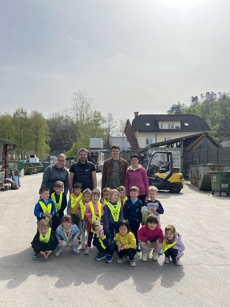 Po vrnitvi smo v igralnici z otroki evalvirali nedavni dogodek ter snovali dejavnosti, ki bodo temeljile na novo pridobljenem znanju. Tako smo k sodelovanju povabili tudi starše otrok ter jih naprosili, da otroci prinesejo v vrtec določena sredstva – predmete – odpadke, ki jih bomo lahko predelali v nekaj drugega. Nastali so povsem unikatni izdelki: žabe iz papirnatih rolic, cvetlični lončki in didaktična igrača iz plastenk. V cvetlične lončke smo natrosili zemljo in nato posejali semena zelišč in cvetlic. Iz škatel so nastali povsem naši zabojniki, preko katerih bodo otroci lahko razvrščali odpadke. Najbolj pa so otroci ponosni na zgodbo, ki so jo ustvarili z najino pomočjo. Navdih je bil prav obisk na Infrastrukturi Bled, zato se zahvaljujemo gospodu Štefanu in gospodu Matjažu za enkratno in poučno izkušnjo!