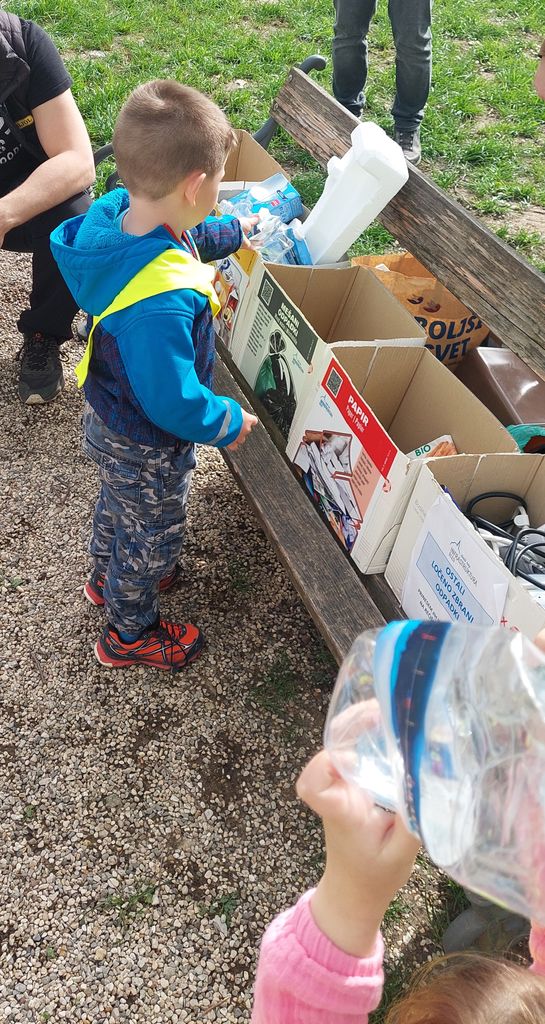 Največji izziv pa nas je čakal na otroškem igrišču ob infrastrukturi. Vsepovsod so ležali različni odpadki. Vsak otrok je našel vsaj dva, potem pa ju poskušal pravilno razvrstiti v primerne zabojnike. Štefan in Matjaž sta razložila, zakaj je tako zelo pomembno, da odpadke ločujemo in jih razvrščamo v vnaprej določene zabojnike. Ob koncu poučnega raziskovanja je potekalo sproščeno gibanje na igralih igrišča ter vrnitev nazaj v vrtec. Pot je bila kar dolga, vendar za otroke iz naše skupine ni predstavljala nikakršne ovire.