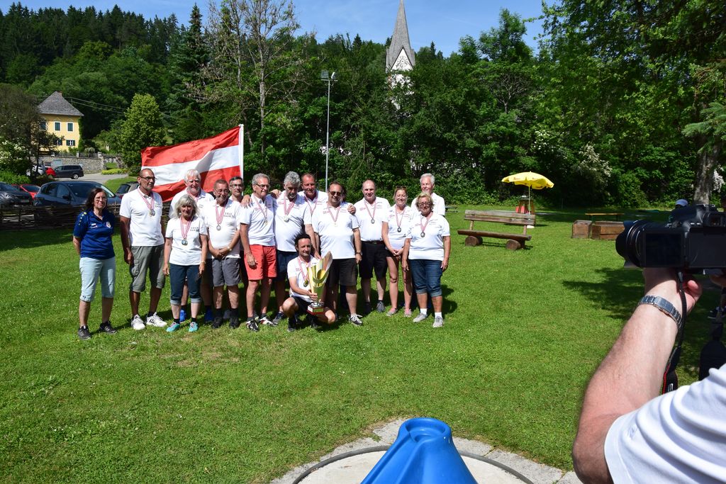 Štirikrožni maraton je v peklenski vročini, a prijateljskem vzdušju potekal vse do tretje ure popoldne, ko se je v senci dreves ob robu igrišča pričela slavnostna razglasitev rezultatov in podelitev priznanj. Minigolfisti iz treh držav (Avstrija, Italija, Slovenija), petnajstih klubov in v sedmih različnih kategorijah so s palicami in žogicami tudi tokrat prikazali svojevrstna mojstrstva in obilo spektakularnih vragolij. Veseli in ponosni smo, ker lahko lokalni javnosti poročamo, da je na tekmi spet zablestel predsednik blejskega društva Sergej Učakar in v spominsko vitrino odnesel najprestižnejšo lovoriko za zmago v absolutnem razredu. »Wörtherseepokal« je osvojil tretjič, znova po letih 2009, ko je zmagal kot debitant, in 2012, kar ni bilo več presenečenje. Izjemno serijo »asov«, kot je z žargonskim izrazom v tej panogi imenovan »hole in one«, v luknjo s prvim udarcem – na tekmi jih je nanizal neverjetnih 58 – je uprizoril že v jutranjih urah in z njo neusmiljeno nadaljeval do zmagoslavnega konca. V štirih krogih turnirja je igrišče premagal s 86 udarci (21, 21, 23, 21) in le za štiri zaostal za svojim najboljšim dosežkom na tej napravi, ki ga je dosegel na deželnem prvenstvu Koroške in ima zelo dolgo brado (20. 9. 2015). Najbližje sta mu za ovratnik dihala stara znanca iz soseščine, Štajerec Albin Wild iz Knittelfelda in Tirolec Alfred Moser iz Fügna. S tem uspehom si je naš najboljši igralec lahko čestital za 58. rojstni dan, ki ga je praznoval le enajst dni kasneje. Mimogrede velja omeniti, da je naš veliki zmagovalec, ustanovitelj in pobudnik edini Slovenec, ki je standardizirano igrišče z osemnajstimi progami premagal s prav toliko udarci (do danes že štirikrat, prvič 20. aprila 2013), da je zmagal na štirih od petih mednarodno priznanih predpisanih sistemih (eternit, beton, MOS in zvezda), da je v njegovi lasti absolutni rekord blejskega klasičnega malega golfa (24 udarcev, 19. 5. 2004) ter da je desetkratni zaporedni in tudi aktualni deželni prvak koroške lige (član celovškega kluba z dvojno licenco je od 1. 1. 2009, prvak pa je bil med letoma 2011 in 2020, a tudi lani).