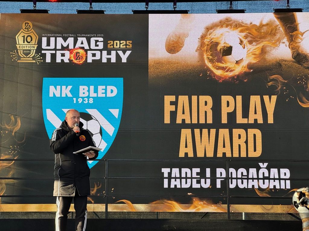Drugi marčevski konec tedna pa je prinesel turnir za igralce do 11 let. Na tem turnirju je sodelovalo kar 128 ekip in Blejci so v skupini M merili moči s sovrstniki Fussballschule Raffl schwarz, NK Domžale rumeni, Hinti Army Juniors, NK Varteks Varaždin, FC Riedisheim, NŠ Jarenina Pesnica in NK Rudar Velenje. Ekipe iz Francije, Avstrije, Hrvaške in Slovenije so bile zahtevni nasprotniki, prav tako petkovo vreme, saj je lilo kot iz škafa in prineslo nekaj izzivov tudi organizatorju. A dve zanesljivi zmagi sta prinesli napredovanje v bronasto skupino nadaljnjih razigravanj. Sicer se zadnja tekma v nedeljo ni iztekla po pričakovanjih, je pa poteza mladega Blejca Tadeja Pogačarja navdušila vse prisotne in klub je pustil neizbrisljiv pečat v zgodovini turnirja Umag Trophy. Med sobotno tekmo proti velenjskemu Rudarju je Tadej namreč v žaru naleta proti golu pohodil nasprotnika in, namesto da bi ustrelil proti golu, žogo raje poslal iz igrišča ter pomagal igralcu, ki je obležal na tleh. Dejanje je tako navdušilo organizatorja, da je Tadeja in celotno ekipo NK Bled nagradil z nagrado za fair play na letošnjem turnirju. Za klub pa je to dodatno priznanje in motivacija za naprej, da ekipe sestavljajo srčni in prijazni športniki, ki poleg rezultata cenijo tudi vrednote, ki so jih glasno poudarjali v Umagu – spoštovanje, odgovornost, strpnost, dostojanstvo in varnost.