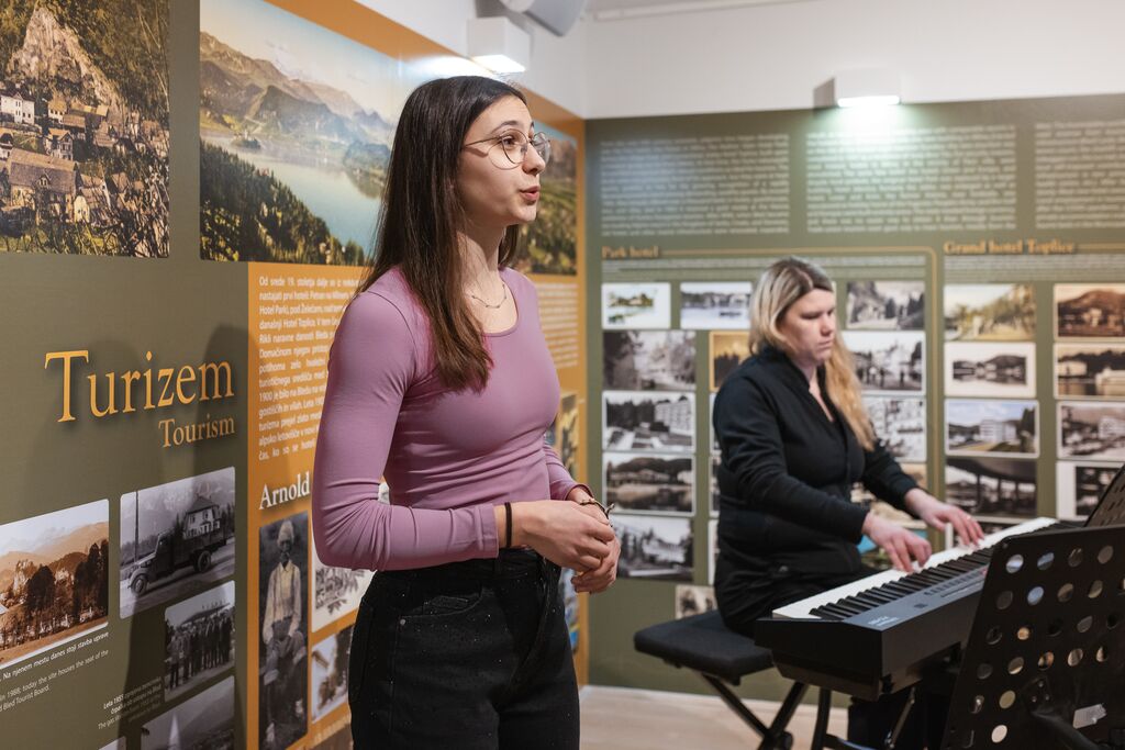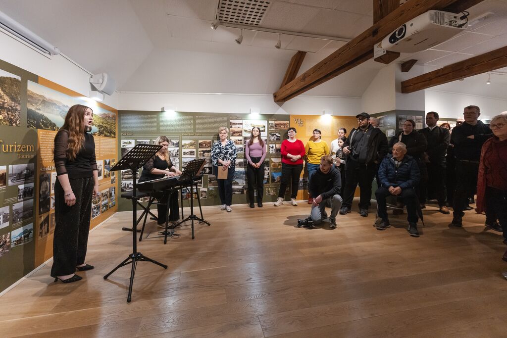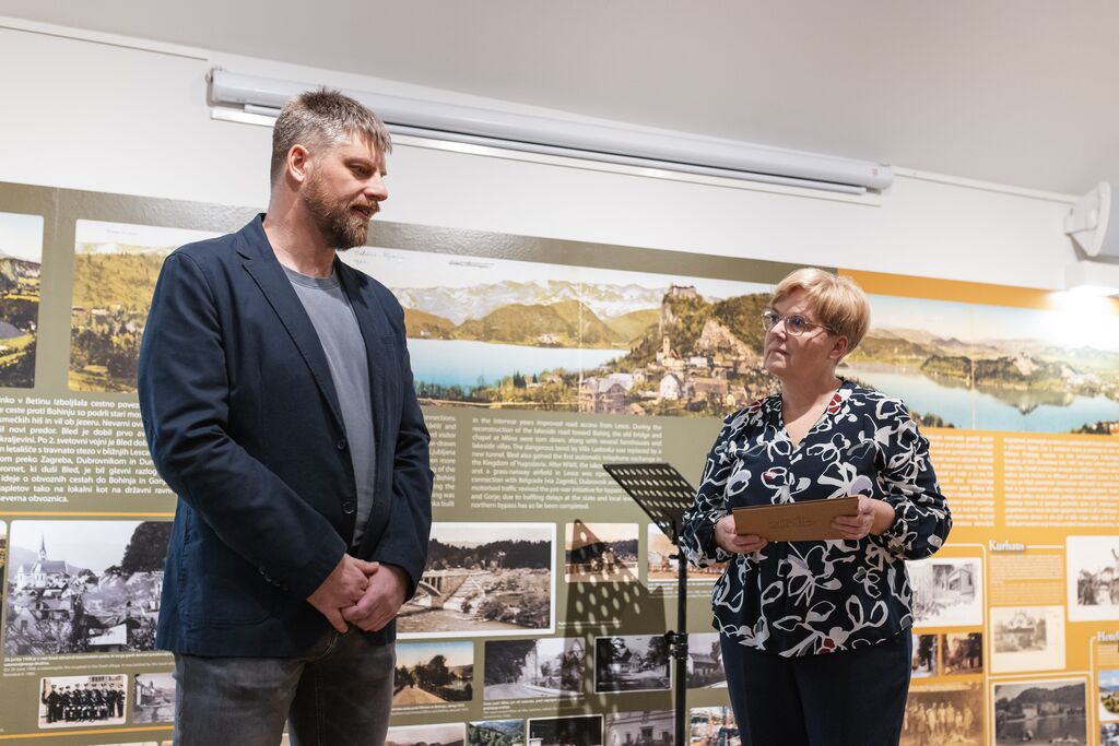 Direktorica Zavoda za kulturo Bled mag. Lea Ferjan je navzoče povabila v svet starih razglednic, tokrat precej drugačno razstavo kot običajno, saj se obiskovalci lahko tako rekoč potopijo v minule podobe Bleda in okolice, ki prekrivajo celotno Bitenčevo dvorano.