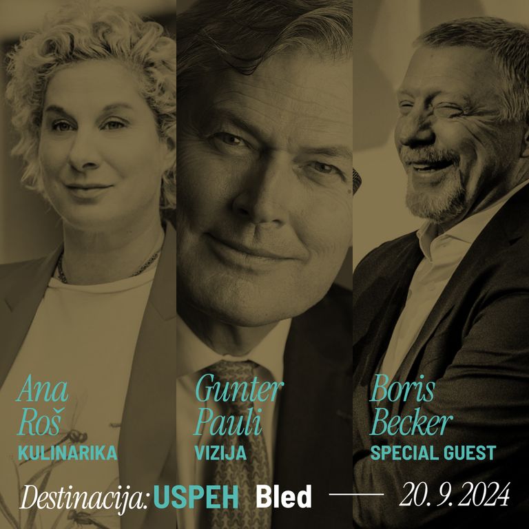 Festivalna dvorana Bled bo danes, v petek, 20. septembra, prizorišče prvega dogodka »Destinacija: USPEH«, ki bo potekal v znamenju trendov, priložnosti za naložbe in ključnih strategijah za uspeh. Strokovnjaki, med njimi tudi ekonomist Gunter Pauli, šefinja Ana Roš in nekdanji teniški prvak Boris Becker, bodo spregovorili o osebnih zgodbah in strategijah za uspeh v hitro se spreminjajočem svetu. Na dogodku bodo razpravljali o trajnosti, tehnologiji, inovacijah in globalnih trendih z osredotočenjem na sončno energijo in električni trajnostni prehod. Več informacij o dogodku je na voljo tukaj.