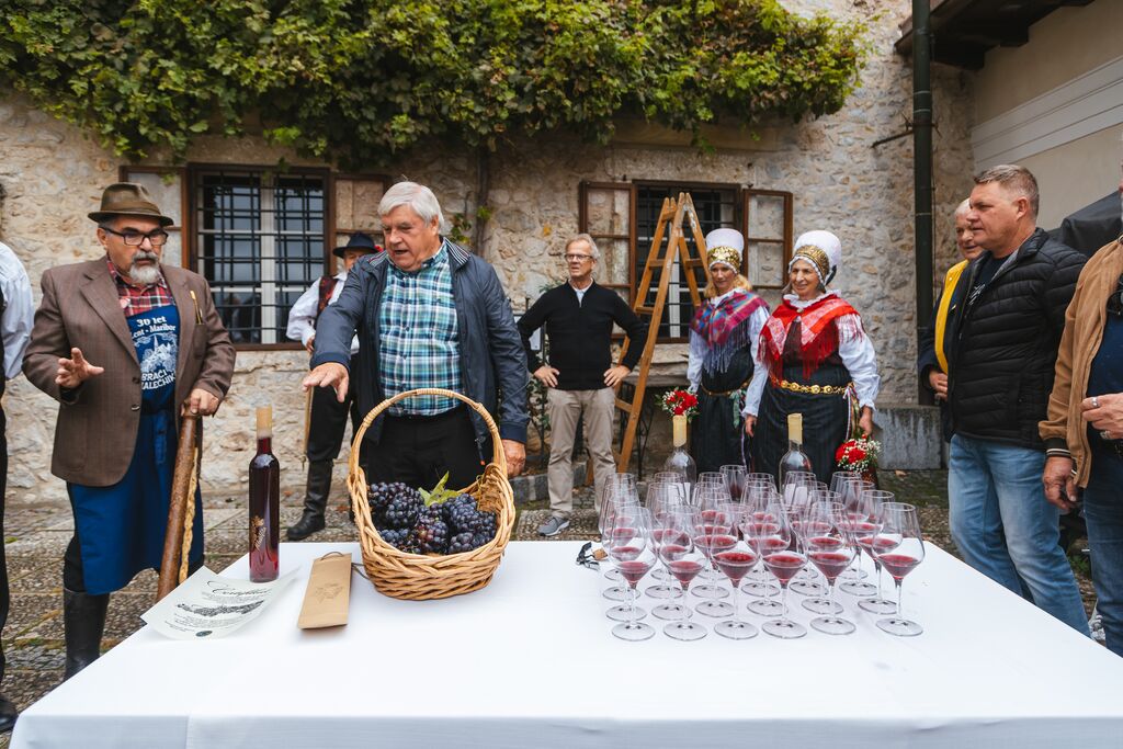 Z vinom lanske letine so vsi navzoči s tradicionalno napitnico nazdravili trdoživi grajski trti, ki je živi spomenik tradicije in dediščine, in priča o stoletjih gojenja vinske trte.