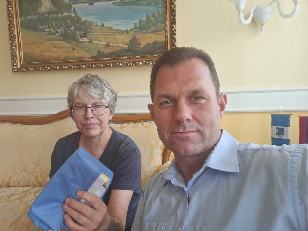 Rahlo otožno sem zaradi našega odhoda z Bleda prejšnji teden simbolično izročila g. Toniju Mežanu blejsko zastavo, ki smo jo imeli izobešeno v naših prostorih. Oba sva bila žalostna ob slovesu, saj žal nismo našli kake ustrezne rešitve, da bi lahko ostali tu. Zelo lepo pa je bilo sodelovati tudi z Zavodom za turizem Bled, kjer smo sploh zadnja leta okrepili dogajanje.