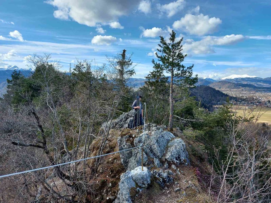 Poti na Ribensko goro so v mreži blejskih pohodniških poti. Na Turizmu Bled smo se v letošnjem letu odločili, da se po lanskoletni izvedbi varoval na Straži, Osojnici in Ojstrici pristopi k varnejši ureditvi poti tudi na Ribenski gori. Pristop na vršni greben in zaključni grebenski vzpon sta namreč zahtevna, steza je ozka, mestoma prepadna. Tudi na razglednem vrhu ni prav veliko prostora. K sodelovanju smo ponovno povabili izkušene in vešče markaciste s Planinskega društva Jesenice, ki so v lepih marčevskih dneh izjemno kvalitetno in lepo zavarovali pot na vrh Ribenske gore. Tako ima Bled že pred začetkom sezone na pohodniških poteh novo, potrebno in tudi atraktivno ureditev varoval, ki nudijo obiskovalcem Ribenske gore varno doživetje prelepe krajine blejskega kota.