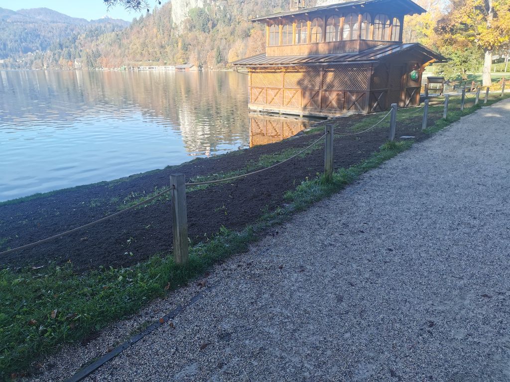 Kot je povedal dr. Jan Bizjak iz javnega podjetja Infrastruktura Bled, je bila zemljina okužena s pleveli, ki jim potem zaradi gostega vrbja nikakor niso bili kos. Zdaj so vrbe odstranili in ob jezero položili travno rušo, območje pa so opremili tudi z zalivalnim sistemom.