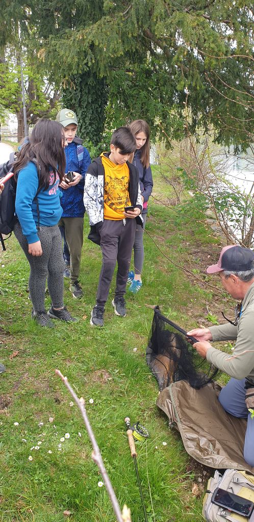tudi čisto pravega krapa, ki smo ga gospodu ribiču pomagali izvleči iz vode. Večina otrok je bila takšnih doživetij deležna prvič. Na