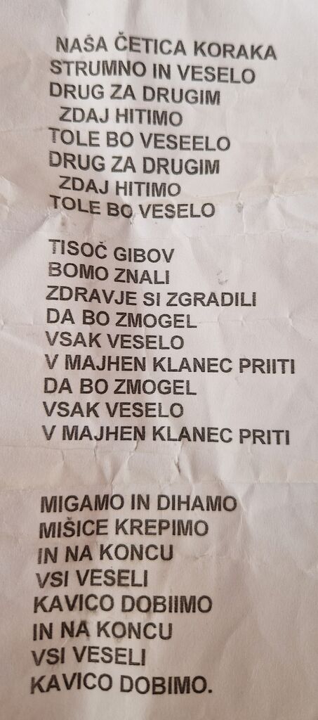 V organizaciji vodstva Društva upokojencev Zasip smo prisluhnili vseslovenski Šoli zdravja. Metoda 1000 gibov nam daje priložnost, da v 30 minutah razgibamo skoraj vse sklepe, od prstov rok do prstov nog. In kot meni avtor Nikolay Grishin v priročniku Ministrstva za zdravje zaradi slave drže pri različnih vsakdanjih opravilih, zaradi ponavljajočih se gibov, obrabljenih sklepov, poškodb, idr., nastajajo bolečine, otekline, limfni zastoji, kar preprečuje pretok energije - kroženje krvi in telesnih tekočin.