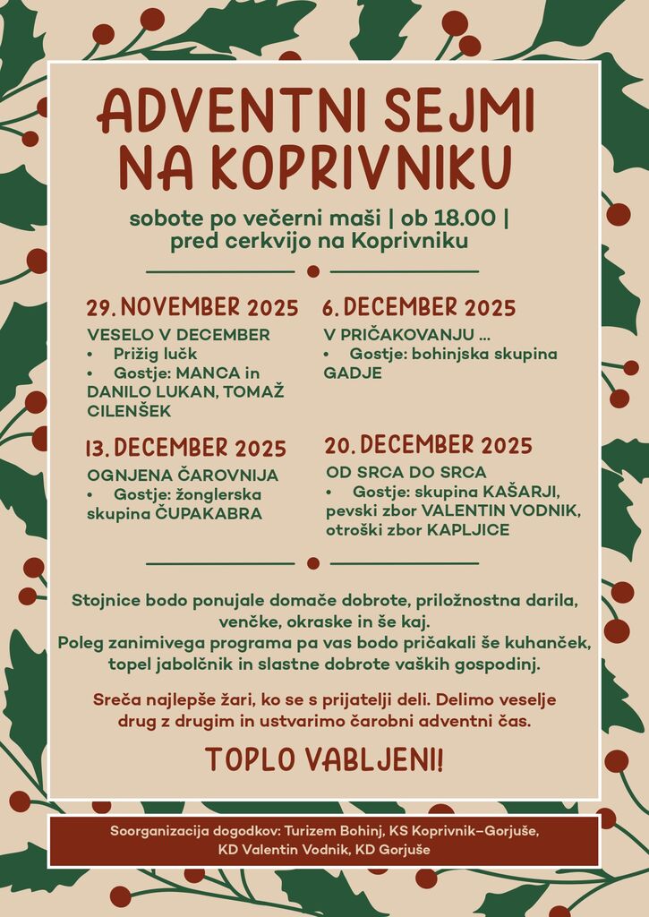 Na sejmu vas bodo pričakali lokalni ustvarjalci, praznične dobrote, domači izdelki ter toplina skupnosti, ki ustvarja pristno bohinjsko adventno doživetje.