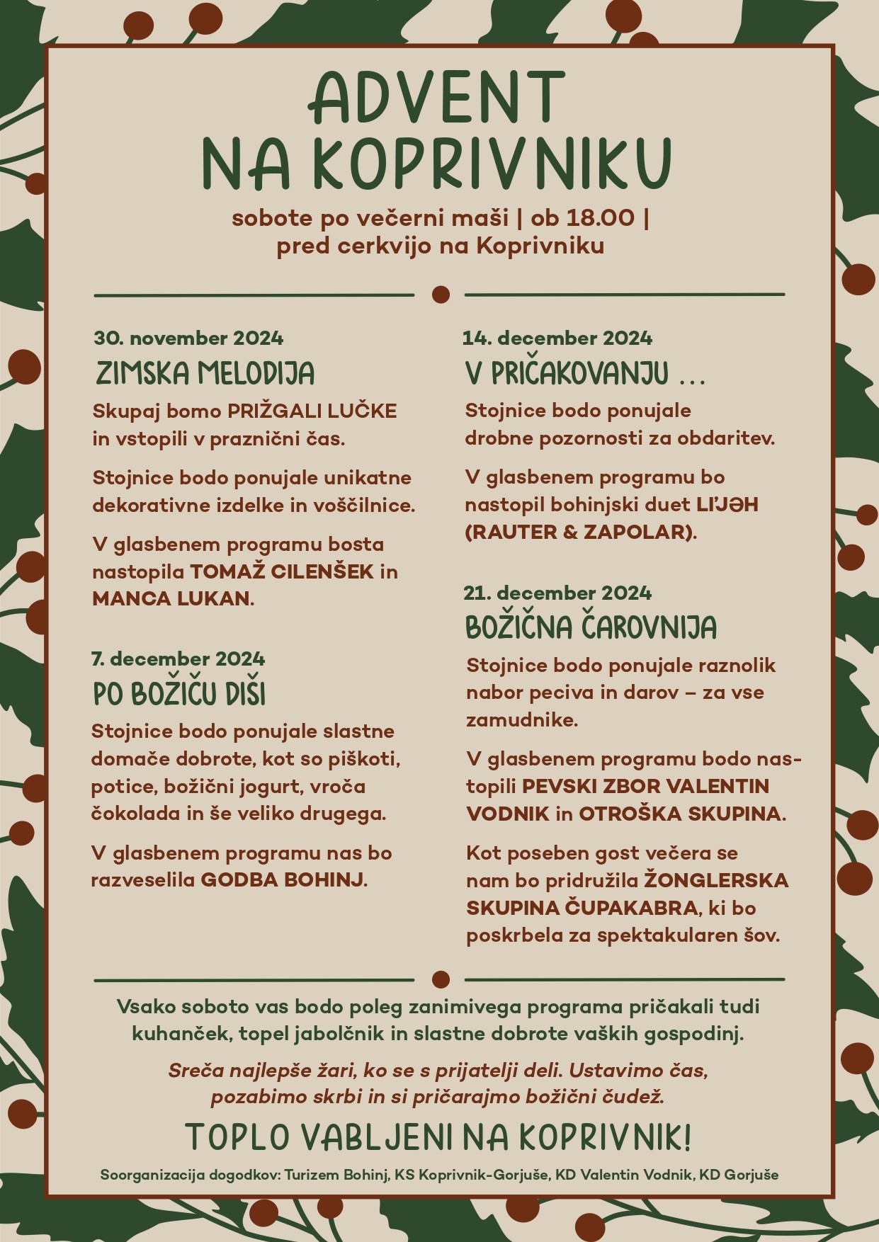 Adventni sejmi na Koprivniku vsako soboto v decembru pred cerkvijo ob 18.00 uri!