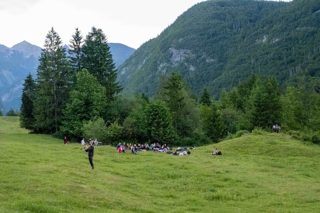 Po sprehodu sledi kratek koncert na prostem. Glasbeniki bodo z improvizacijo in akustičnimi instrumenti ustvarjali glasbo, ki se odziva na zvoke narave in oglašanje ptic. Tako nastane poseben zvočni večer, kjer se narava in glasba srečata v skupnem poslušanju in soustvarjanju prostora.