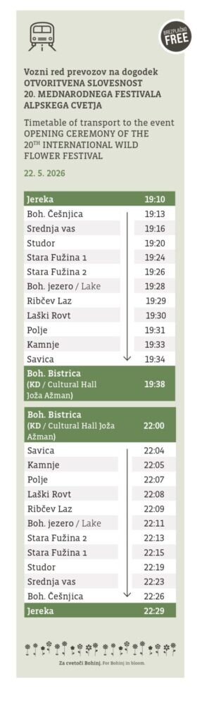 Kontaktni podatki organizatorja: TURIZEM BOHINJ, info@bohinj.si, +386 (0)4 574 75 90.