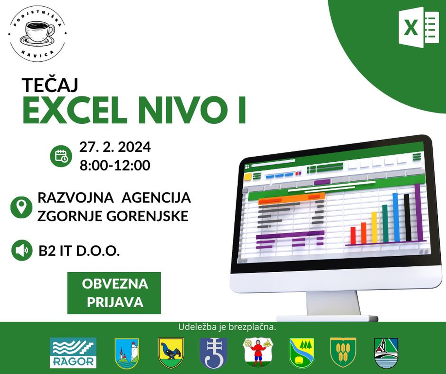 Na Razvojni agenciji Zgornje Gorenjske v sklopu projekta Podjetniška kavica organiziramo tečaj Excel-a v dveh nivojih: