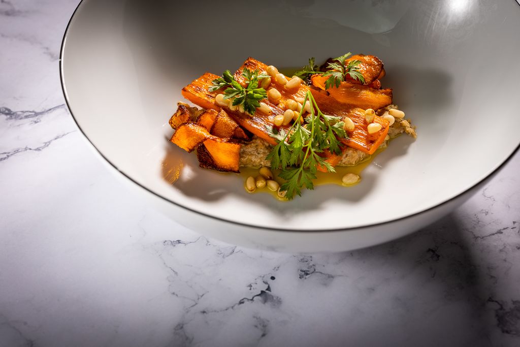 Preverite kreativne krožnike lokalnih in sezonskih dobrot v mesnem in veganskem meniju. Postregel vam bo z jedmi najboljše slovenske in lokalne kulinarke, ki združujejo tradicijo in sodobnost.