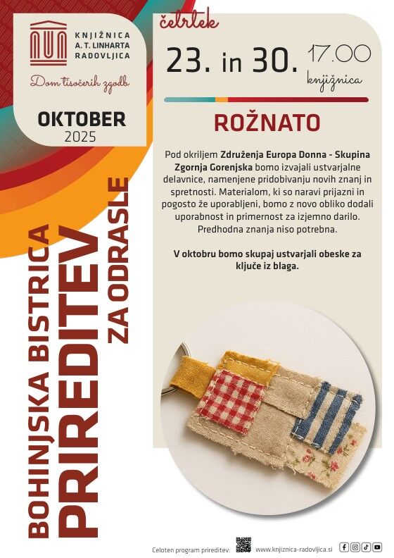 - sreda 8. oktober ob 17.00: Pravljične rokodelnice