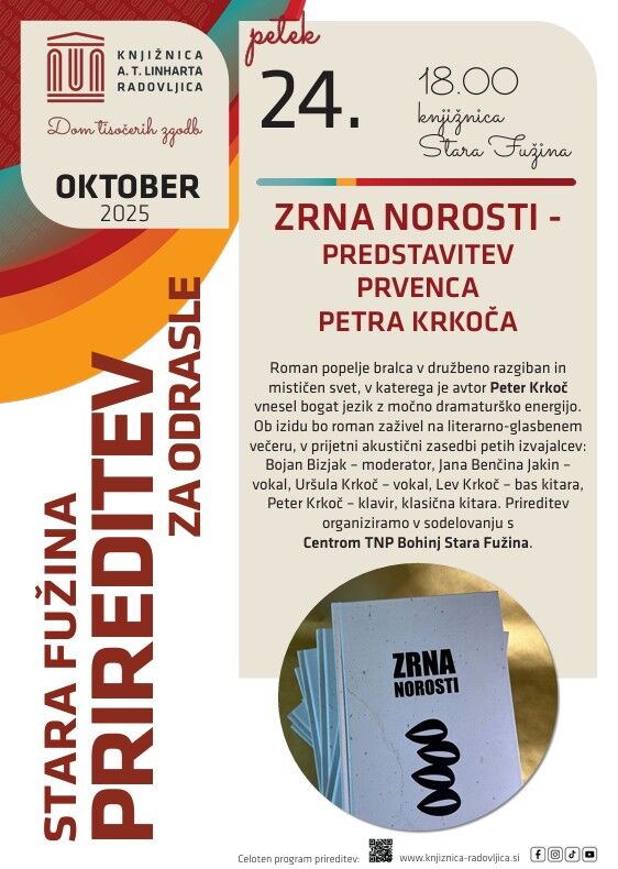 Petek, 24. oktober ob 18.00: Zrna norosti - predstavitev prvenca Petra Krkoča