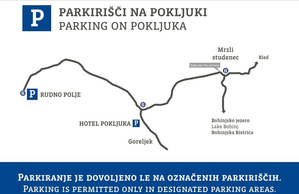 V kolikor se boste na Pokljuko vendarle odpravili z lastnim vozilom na spletni strani promet Bohinj (zgornja povezava) spremljajte tudi aktualna obvestila glede zasedenosti parkirišč na Pokljuki. V kolikor so parkirišča zasedena si boste tako prihranili pot nazaj v dolino, ker parkiranje na neoznačenih mestih je prepovedano in tudi kaznovano z globo.