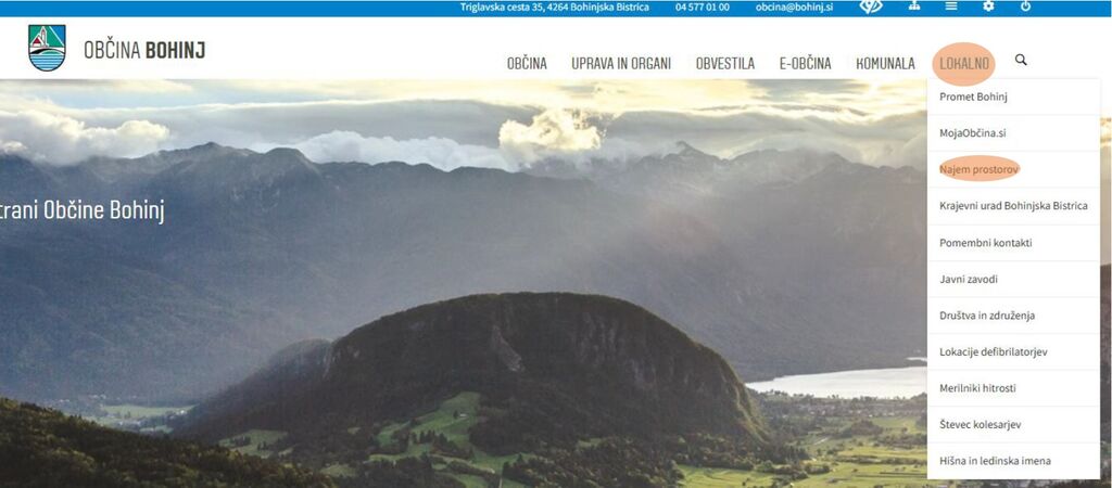 1. na uvodni strani spletnega mesta izberite v zgornjem meniju LOKALNO/Najem prostorov,