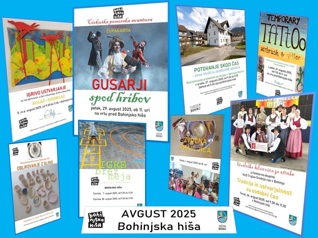 V prilogi posredujemo seznam počitniških aktivnosti, ki bodo organizirane v avgustu v Bohinjski hiši.