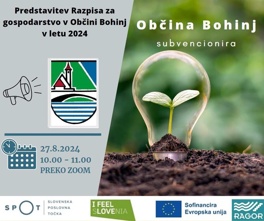 Predstavitev javnega razpisa za spodbujanje razvoja gospodarstva v občini Bohinj za leto 2024