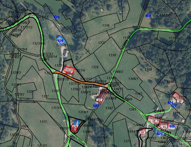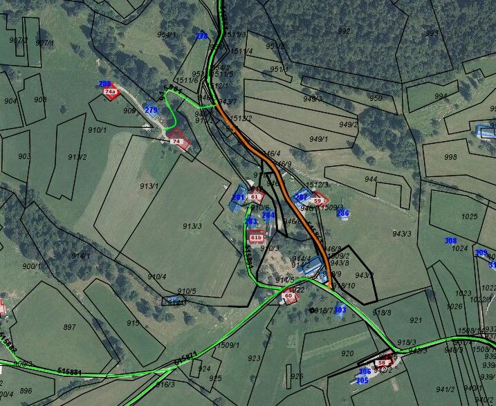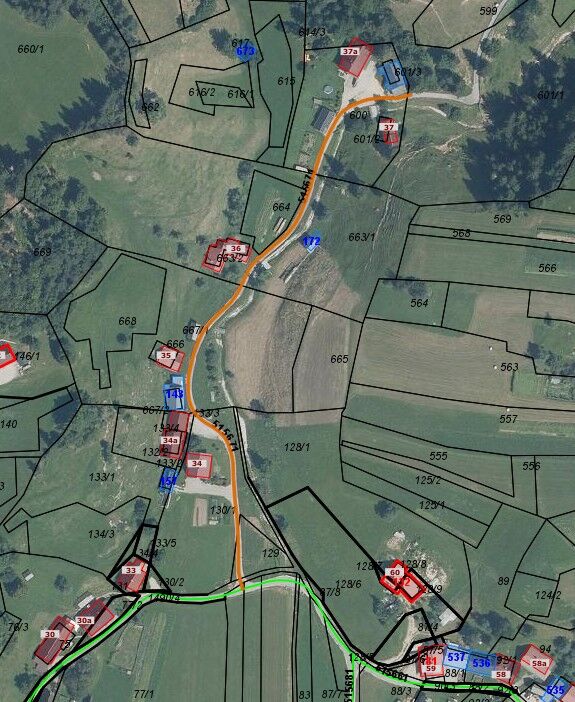 Na območju Zg. Gorjuš na javni poti 515861 C. SKOZI ZGORNJE GORJUŠE I (označeno z oranžno barvo).