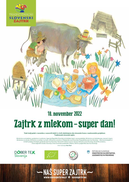 Na dan slovenske hrane, ki ga obeležujemo vsak tretji petek v novembru, letos 18. novembra, bo že enajstič potekal Tradicionalni slovenski zajtrk. V ta projekt so vključeni vrtci, osnovne šole, zavodi za vzgojo in izobraževanje otrok in mladostnikov s posebnimi potrebami ter druge institucije oz. javni zavodi. Dan slovenske hrane bomo praznovali s Tradicionalnim slovenskim zajtrkom, ki bo v petek, 18. novembra ob 10. uri v avli Osnovne šole dr. Janeza Mencingerja. Zajtrk bodo pripravile v Društvi kmečkih žena in deklet Bohinja, osnovnošolci pa bodo pripravili tudi krajši kulturni program.