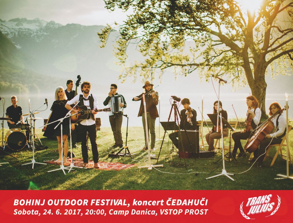 Sobotni večer bo popestrila posebna Trans Julius zabava v družbi posebnih glasbenih izvajalcev folk rock skupine Čedahuči, ki bodo poskrbeli tudi za najbolj zahtevne glasbene okuse in za pravo mero glasnosti, da boste lahko dnevno druženje in zabavo podaljšali tudi v nočne ure.