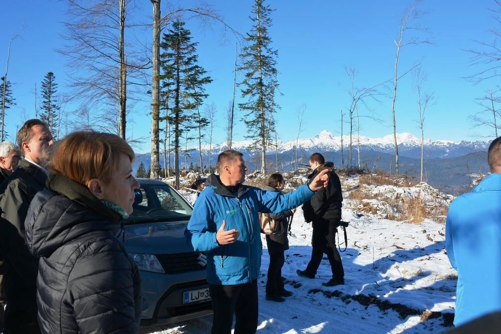 Ministrica za kmetijstvo, gozdarstvo in prehrano dr. Aleksandra Pivec na ogledu sanacije gozdov v Bohinju