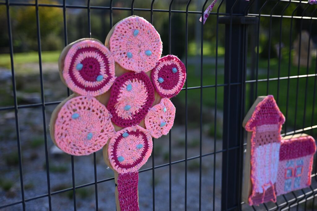 S pisanimi in skrbno izdelanimi pleteninami sta pod stebrom viadukta okrasila del Borovnice. Izdelki ponazarjajo hiške, drevesa, tudi cerkev. Z njimi je društvo simbolično izrazilo solidarnost z vsemi ženskami, ki se soočajo z boleznijo in spomnilo na pomen zgodnjega odkrivanja in preventive.