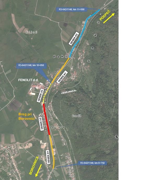 Občina je julija preverila možnost spremembe prečnega profila ceste na odseku 3/2 (dolžina odseka je približno 360 m), kjer je s projektno dokumentacijo predvidena ureditev kolesarskega pasu na vozišču od Borovnice proti Podpeči in kolesarske steze (površina za kolesarje je od vozišča ločena z deniveliranim robnikom, visokim 12 cm) od Podpeči proti Borovnici. Kolesarsko stezo lahko skladno s prometnimi predpisi uporabljajo tudi pešci. Dana je bila usmeritev, da se preveri možnost ureditve kolesarskega pasu na vozišču tudi v smeri proti Borovnici ter izgradnje ločenega deniveliranega pločnika. Predlog je izhajal predvsem iz pomisleka krajanov, da bodo kolesarji na kolesarski stezi vozili prehitro in s tem ogrožali pešce na poti oziroma bo oteženo izvažanje lastnikov z dvorišč na regionalno cesto.