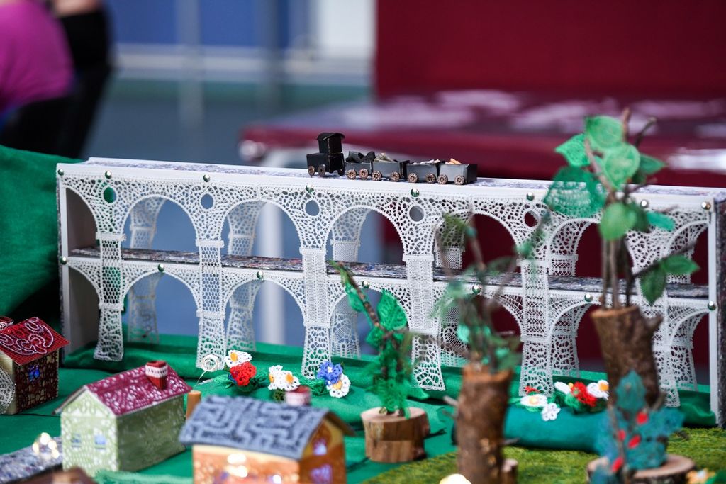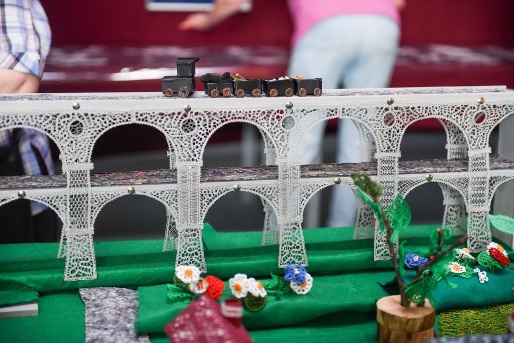 Po besedah klekljaric je bila upodobitev viadukta v čipkah velik izziv. Vajeni smo njegovih slik v vseh tehnikah, od olja, akvarelov, grafike, žganja v les, gobelinov in še česa, a v čipki ga še nismo videli. Poleg mostu so bile prikazane tudi hiše in okolica Borovnice okoli leta 1950, ko je bil most dokončno porušen in je takrat začela nastajati nova vas. Upodobljena je tudi cerkev sv. Marjete, poslovilna vežica, župnišče in celo zid. Pa krošnje dreves in še kaj ...