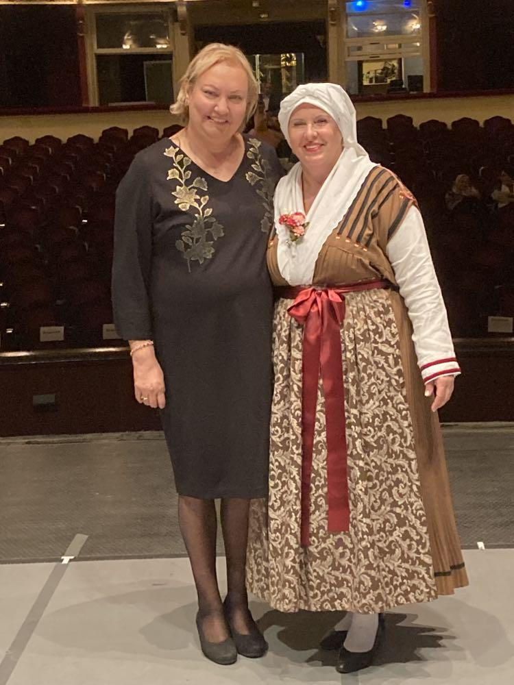 bučnem aplavzu so sledile čustvene zahvale in izmenjava daril. Gospe Salwi smo podarili gorenjsko narodno nošo, ki jo je