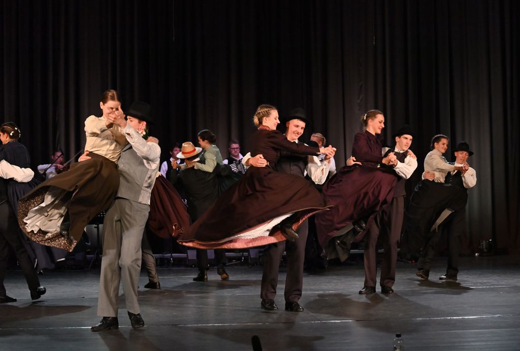 Horjulski in borovniški folklorniki pa so se pod vodstvom Marije Čipić Rehar in glasbeno priredbo Eve Grmek predstavili z »romantičnim štirikotnikom«, ki so ga naslovili »Med dvema stoloma«. Dobri poznavalci književnosti boste hitro razbrali, da gre za navdih po istoimenskem romanu Josipa Jurčiča, ki govori o ljubezenskem štirikotniku med kmečko deklico, izobraženim kmečkim fantom, pohlepno mestno gospodično in mestnim gospodom. Nauk te zgodbe je jasen, da ni dobro sedeti na dveh stolih, ker se lahko kar hitro zgodi, da se znajdeš na tleh, med obema.