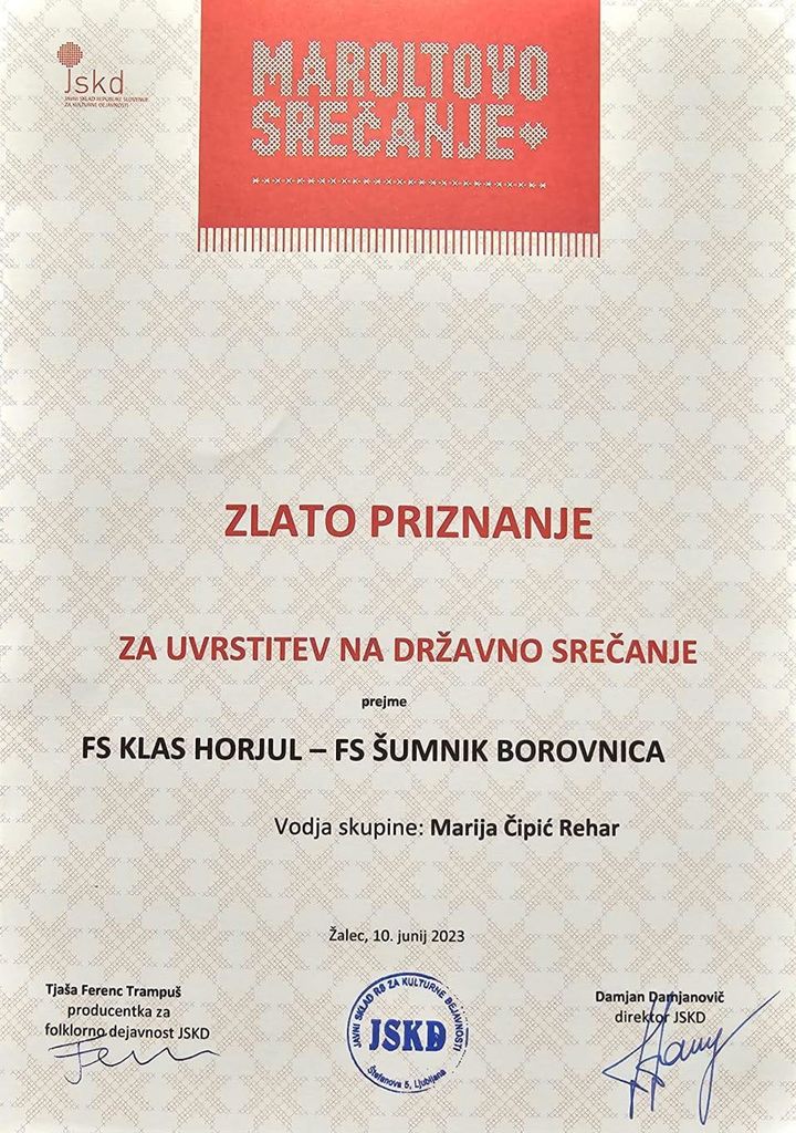 Potem ko so se folklorniki Folklorne skupine Šumnik iz Borovnice in Folklorne skupine Klas iz Horjula združeni uvrstili na regijski nivo, je sledila še prijetna novica, da so dosegli državno raven in se tako znova uvrstili na Maroltovo srečanje odraslih folklornih skupin.