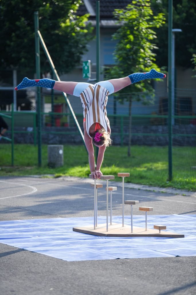 Tudi akrobatika je del tako tradicionalnega kot novega cirkusa. Nam se je predstavila mlada Nemka Kira Rabenstain oziroma HappyHandstandFreak s solo akrobatsko predstavo. Na različnih višinskih podporah nam je z zelo visoko tehniko predvsem stoje na rokah pokazala, kako se spopasti s porazi in da če ne odnehaš, lahko dosežeš več, kot bi si kdajkoli predstavljal.