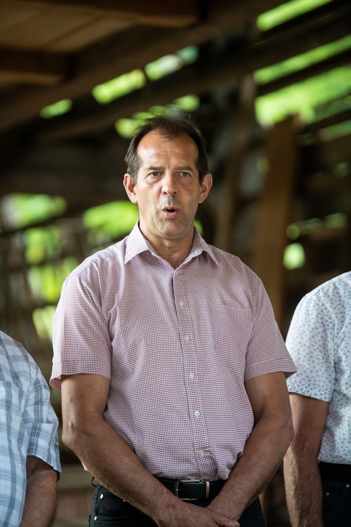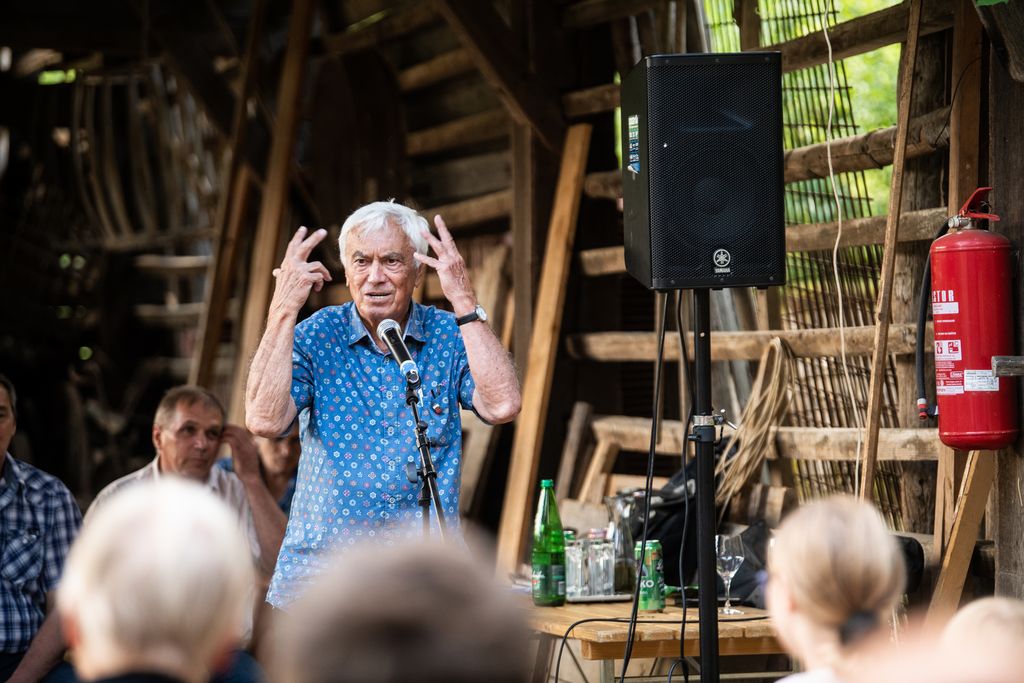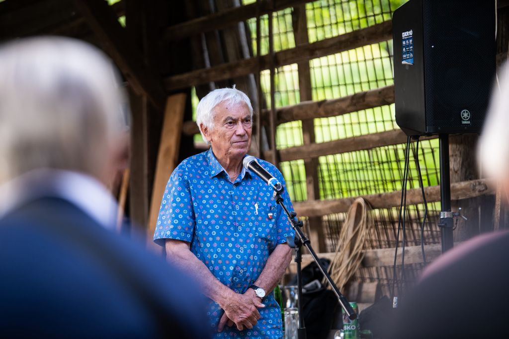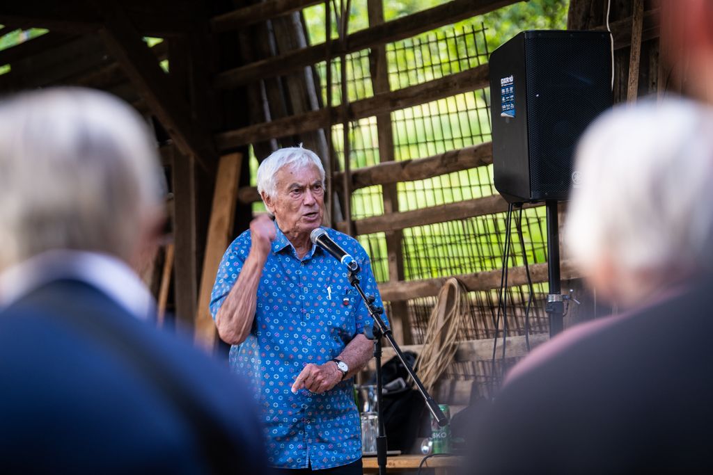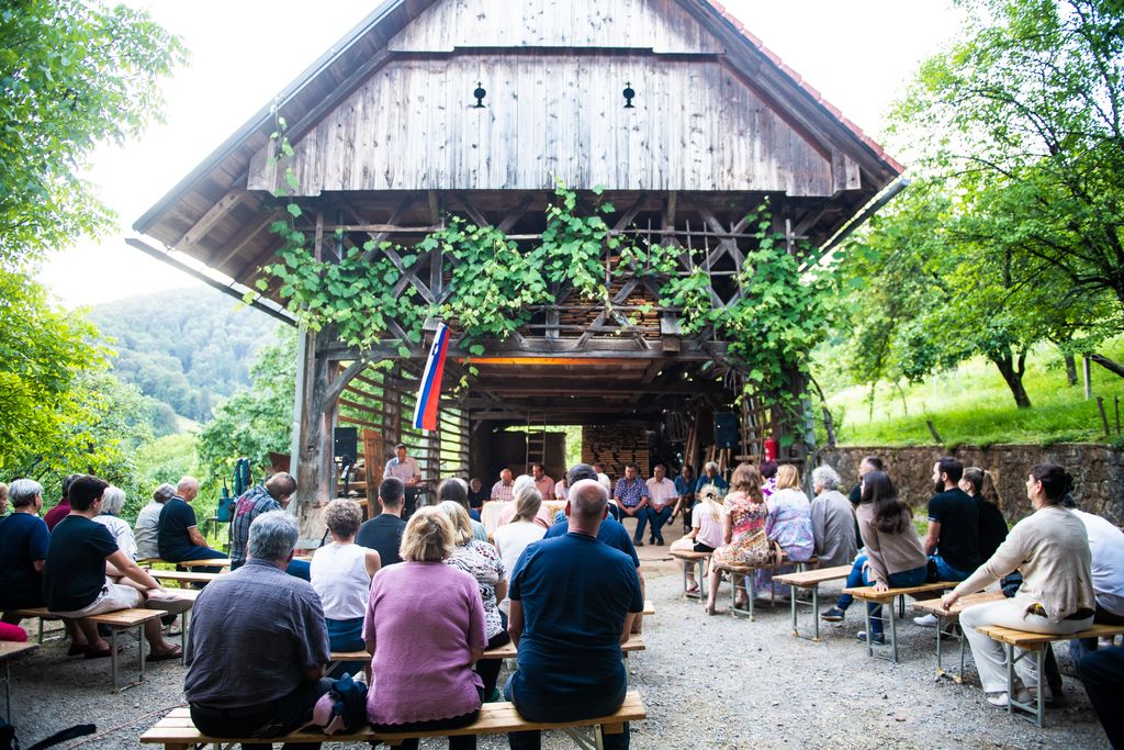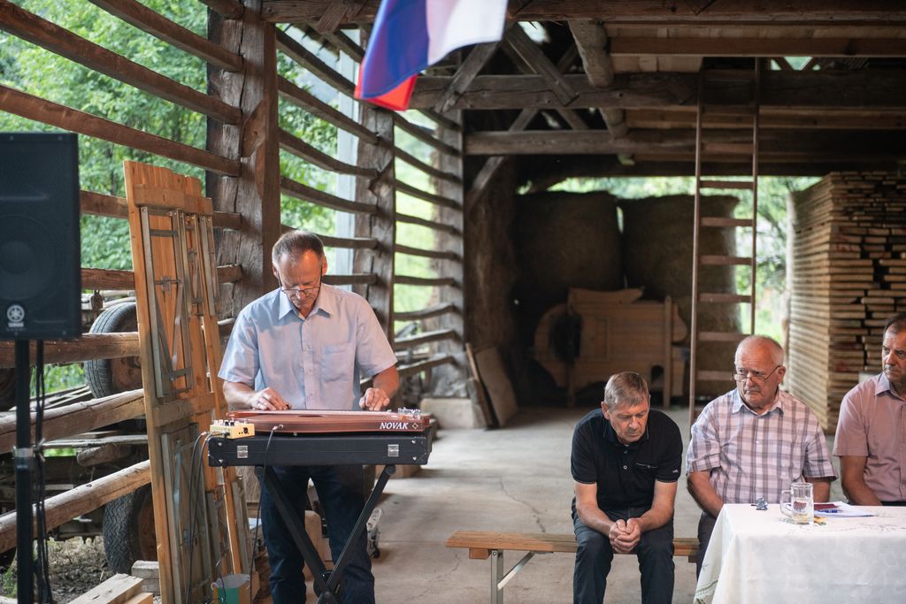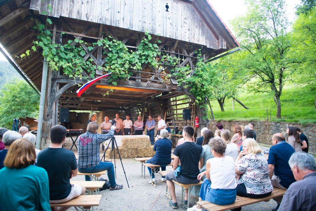 Kot ga je napovedala pobudnica dogodka in gospodarica Slavi Košir, je brez oklevanja sprejel povabilo, da pride v Zabočevo, čeprav za malo vasico nikoli ni slišal. “Med srčne ljudi rad pridem, med praznovalce države, med tiste ljudi, ki se veselijo. Mi praznujemo in kljub vsemu praznujemo,” je naglasil Kuntner in izrazil veliko veselje, ko je ob prihodu na dvorišče kmetije zagledal številne otroke. “To je naše upanje, zato se mi starčki lahko veselimo, ker je pred nami prihodnost.”