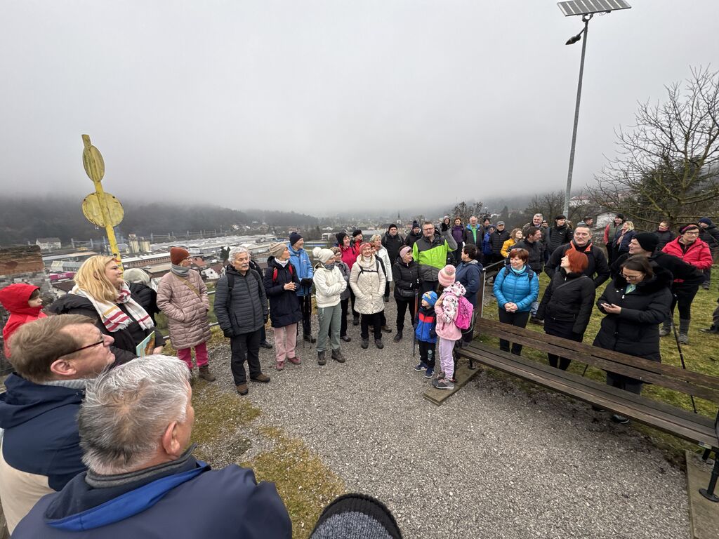 Pot je pohodnike vodila na Staro postajo, do razgleda na borovniško kotlino, kjer je v imenu sekcije za ohranjanje dediščine Sabina Leben predstavila Tematski park in nekaj zanimivih informacij iz časov pred prihodom železnice v kraj. Najbolj zanimivi za vse so bili podatki o rojstvih otrok, prvi zapis v krstnih knjigah v župniji Borovnica segajo v leto 1785 in takrat je bilo krščenih in rojenih 48 otrok, ob začetku gradnje viadukta leta 1850 je bilo 66 rojstev, ob koncu gradnje 76, največ pa leta 1905, ko se je rodilo 92 otrok. Pa borovniški naraščaj danes? Pred tremi leti se je rodilo 47 novorojenčkov. Svojo slikovito predstavitev je Sabina tradicionalno zaključila z recitacijo in sicer si je tokrat zaradi Kosovelovega leta izbrala pesem Srečka Kosovela “Deček in sonce”. In kot je šaljivo povedala, bi lahko bila prva kitica pesmi tudi himna Borovnice. Glasi pa se takole: “Dobro jutro, sonček, kje si se mudil, da tako si pozno čez gore privil?”.