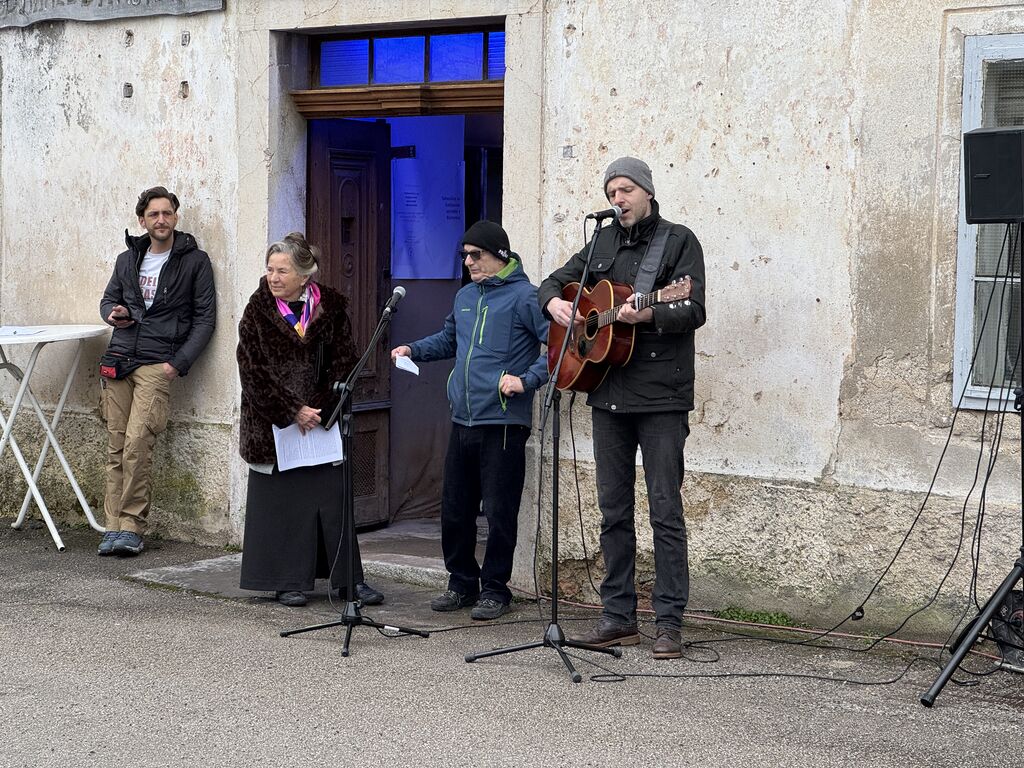 Eden takšnih je tudi glasbenik Primož Križaj, ki je tri svoje avtorske pesmi predstavil pri predzadnji točki pohoda, pred prostori HUD Karla Barjanskega. Tam smo nekaj več slišali o dr. Marji Boršnik, o kateri je ob pogledu na rojstno hišo pripovedovala njena hčerka ddr. Francka Premk, Gorazd Prah je nekaj povedal o Francu Paplerju, Matjaž Ocepek pa o Jožetu Kranjcu.
