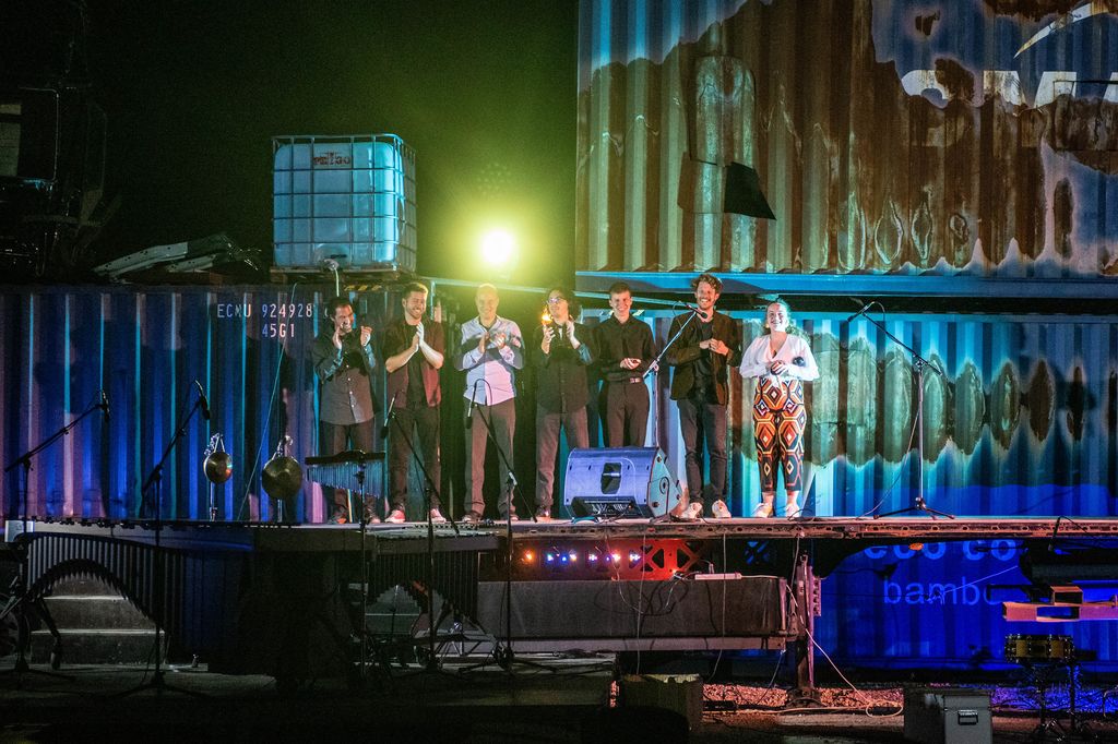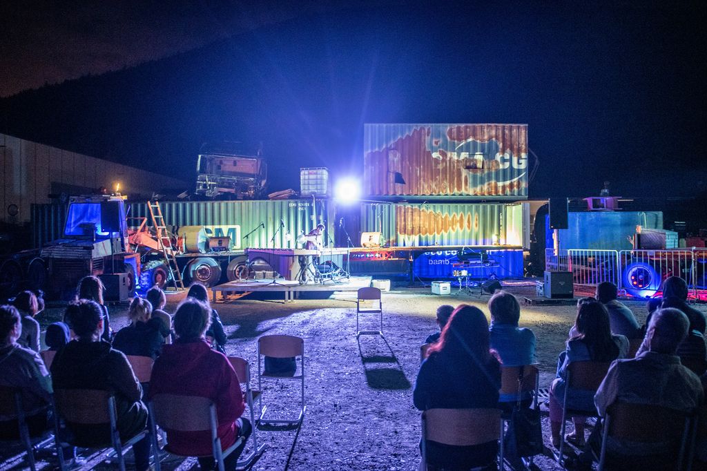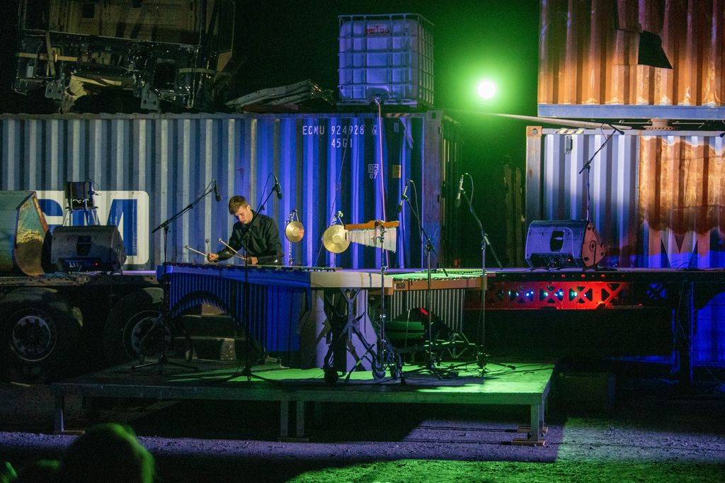 Na parkirišču podjetja Kržič so tako prvo soboto v septembru zazvenela običajna in manj običajna tolkala v kombinaciji z raznoliko moderno in malo manj moderno elektroniko. Slovenski mednarodno uveljavljeni ustvarjalci so za občinstvo na prostem pripravili barvit pregled nekaterih najfascinantnejših del za tolkala in vnaprej pripravljene elektronske posnetke. Gotovo lahko rečemo, da je bila predstava umeščena v primerno okolje. Nastopili pa so Alenka Jezernik, Peter Jeretina, Martin Pinter, Aleksander Simionov, Jože Bogolin, Simon Klavža, ki so med drugim člani različnih orkestov, pa tudi učitelji v glasbenih šolah.