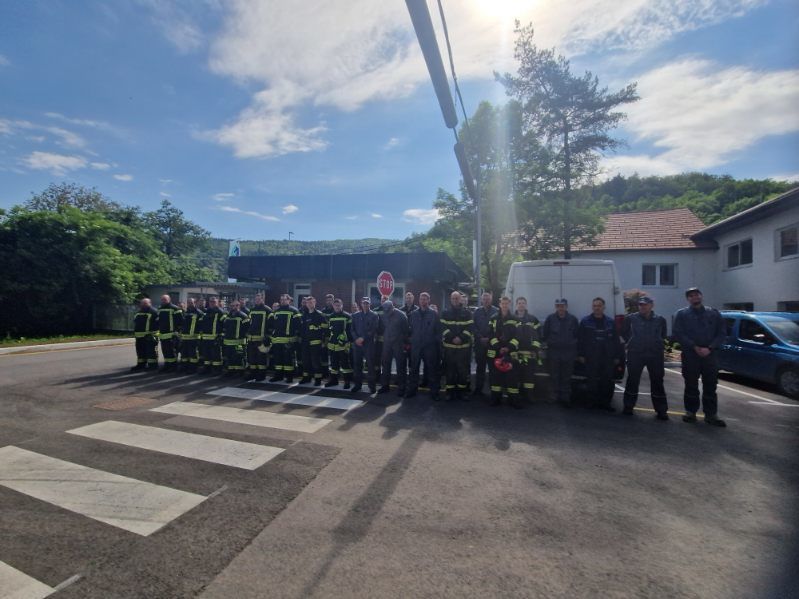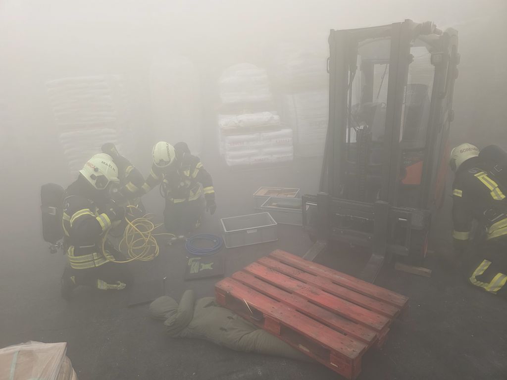 "Gori skladiščni prostor, ukleščen voznik viličarja.” Takšen je bil zapis poziva, namenjen operativnim članom borovniških gasilskih društev, ki so v soboto, 10. maja, izvedli gasilsko vajo v podjetju Fenolit.