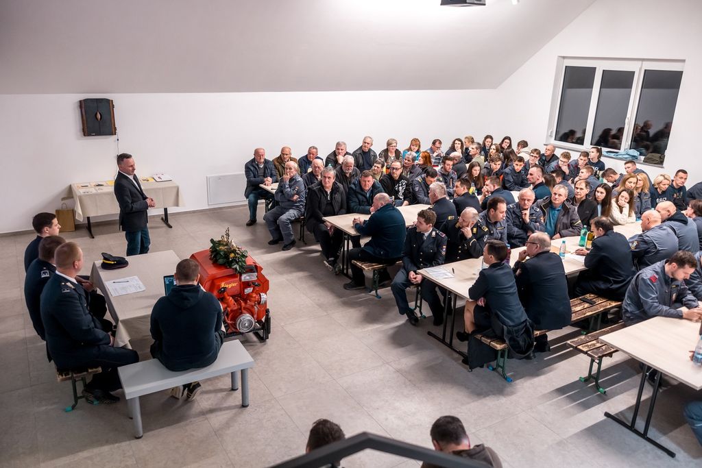 Leto 2023 je bilo za društvo ponovno zelo pestro, kot osrednji dogodek pa je predsednik Ciril Trček poudaril prevzem in blagoslov novega vozila. Ker organizacija takšnega dogodka ni mačji kašelj, se je zahvalil vsem, ki so prispevali svoj kamenček v mozaiku. Čez vse leto se je počasi premikalo tudi pri urejanju zgornjih prostorov doma in v smeri pridobitve uporabnega dovoljenja. Zahvalil se je tudi vsem, ki opravljajo manj priljubljena dela v društvu in občini za finančno podporo.